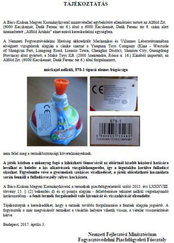 Fehér alapon színes csíkokkal, narancssárga fogantyúval rendelkező búgócsiga